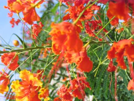 Ook de tuin is kaal. Ik zet er een plant met oranje bloemetjes in: een tuturutu, leer ik. De tuturutu lijkt op de tamarinde als je naar de blaadjes en de bloemetjes kijkt. Ze dragen zelfs vruchten die op elkaar lijken: lange, bruine peulen. Alleen die van de tamarinde kun je eten. Een bitterzoete vrucht waar ze op Curaçao van alles mee doen. Je moet er van houden.