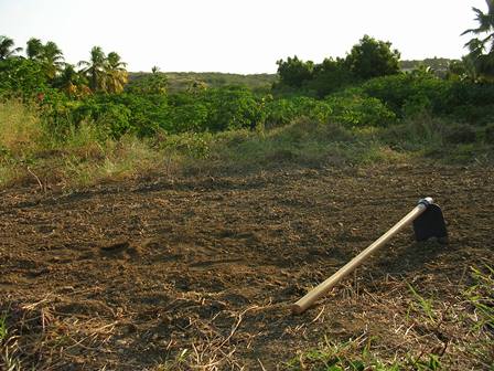 Ik krijg een chapi van mijn neef te leen en hij legt mij uit hoe ik daarmee de grond moet bewerken. En daar ga ik hoor: chap, chap, chap, chap. Hupsakee, de grond helemaal mooi kaal. Zo’n chapi weegt, dus je moet even goed weten hoe je hem gebruikt. En niet te lang, anders is je rug de volgende dag zo stijf, dat je een week lang Niks meer kan.