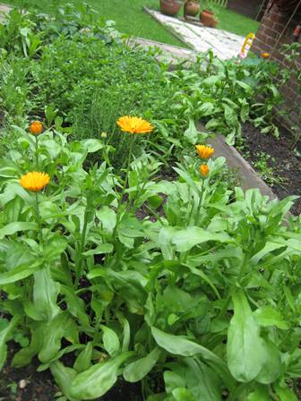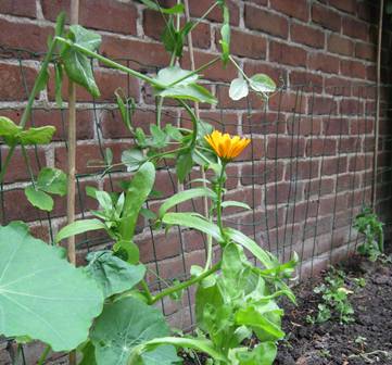 Goudsbloem draagt de Latijnse naam Calendula Officinalis. Behalve dat het een ontzettend leuke bloem is om te zien, heeft hij ook een functie. De bloemen pluk ik zodra ze uitgebloeid raken en laat ik drogen in de zon. Niet te dicht op elkaar, want dan gaan ze schimmelen. Daarna maak ik er thee van voor Zoon die last heeft van eczeem. Goudsbloemen houden ook de slakken een beetje weg.