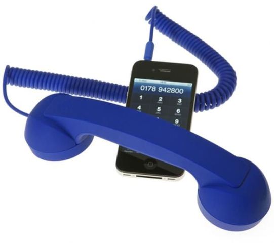 Ondertussen denk ik bij mijzelf: wil ik eigenlijk wel een smartphone, terwijl ik in het Xenos-reclameblaadje iets heel aantrekkelijks tegenkom. Zo’n lekker dikke, vette, retro-telefoonhoorn die je gemakkelijk tussen je oor en schouder klemt terwijl je door het huis loopt, kookt, de was doet, de afwas en je muren opnieuw saust. Bovendien kun je deze hoorn overal inpluggen: in je telefoon, je pc, je tablet.